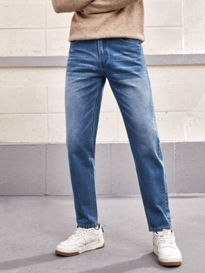 Upgrade your casual style with these Men’s Light Blue Distressed Denim Jeans, designed for the modern trendsetter. Featuring a slim-tapered fit with light fading and ripped detailing, these jeans bring urban attitude to your everyday look. Stylish street-style text prints and cuffed hems complete the edgy design, making them perfect for pairing with sneakers and casual tees.